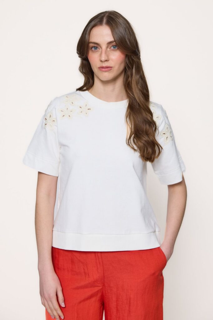 Camiseta de algodón con bordados florales
