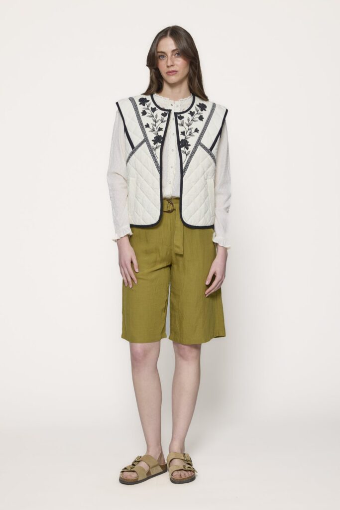 Parka acolchada confeccionada en tejido con acabado ligeramente brillante o metalizado, que aporta un estilo moderno. Incluye capucha amplia con borde de pelo sintético suave y voluminoso para protección adicional. Cierre frontal de cremallera completa, bolsillos laterales discretos con cierre o solapa y detalles de cintas decorativas en cuello o hombros. Mangas largas y corte recto con largo a la cadera o ligeramente por debajo. Prenda funcional con diseño sofisticado.